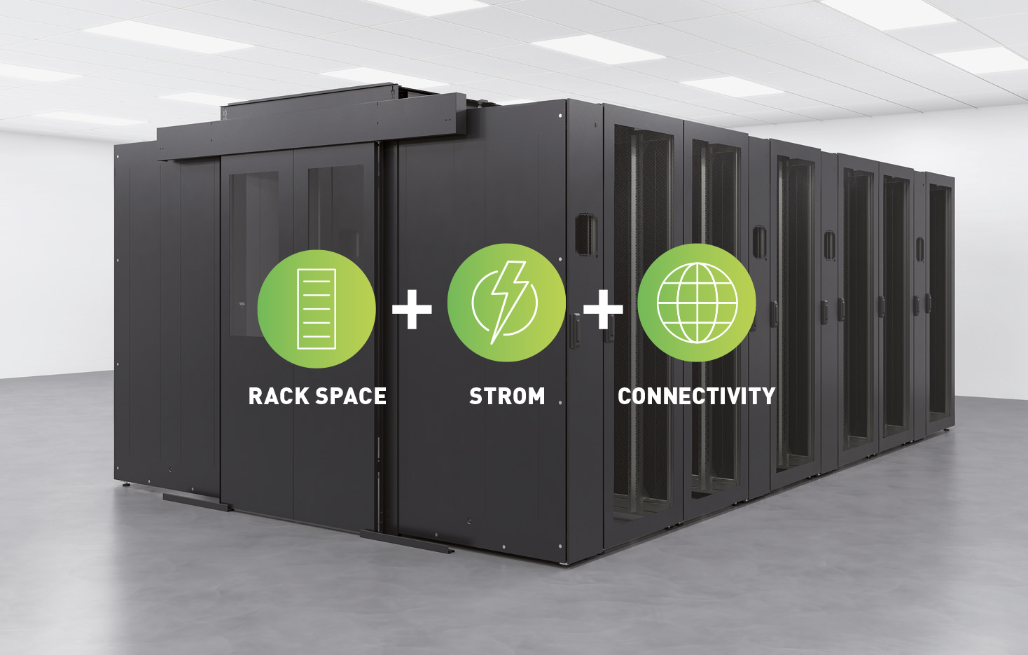Unser neues 1⁄3 Rack mit 15 Höheneinheiten (HE) ist in einem Cube mit Warmgang-Einhausung untergebracht. Speziell für KMUs, mit dem Anspruch einer finanziellen Planungssicherheit, wurden dieses all-inclusive Business Bundle mit integrierter Nutzleistung und Internet-Feed geschaffen. mit integrierter Nutzleistung sowie einem Internet-Feed geschaffen.